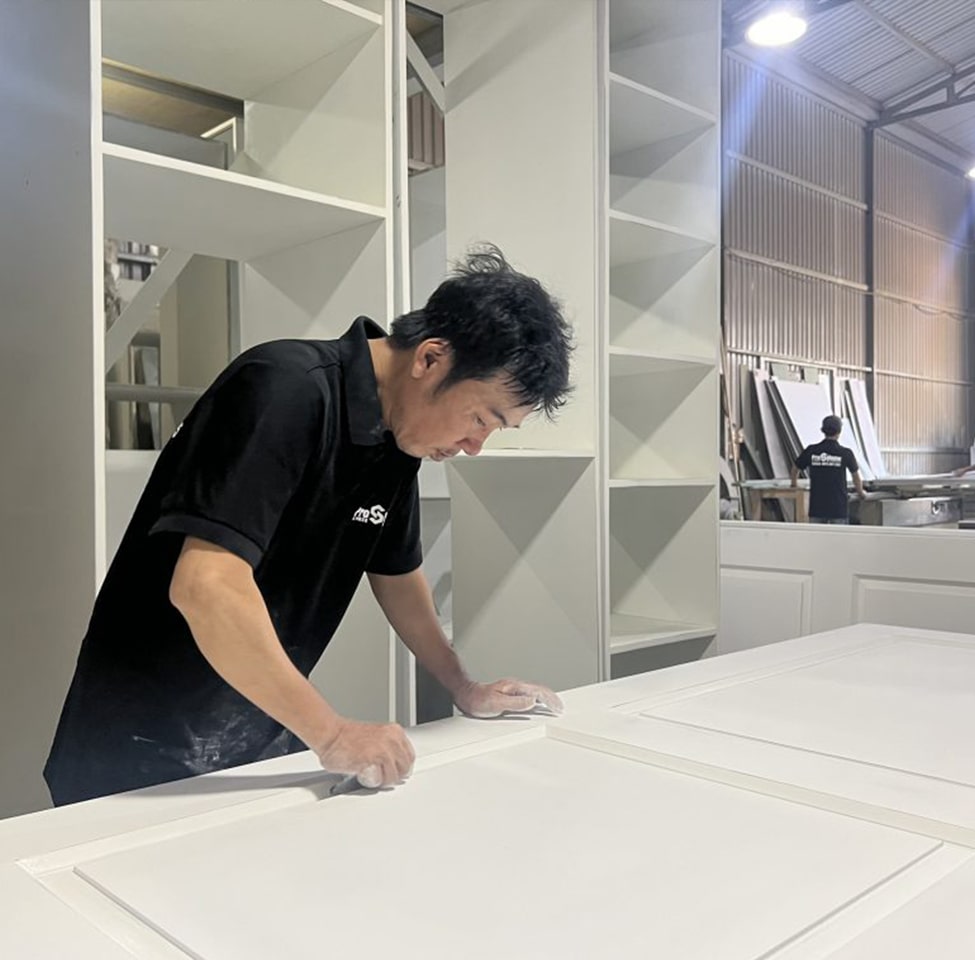 Chúng tôi tự hào sở hữu nhà xưởng rộng 800 m², được đầu tư mạnh mẽ với hệ thống máy móc CNC, máy dán cạnh tự động và các thiết bị tiên tiến khác. Mọi sản phẩm nội thất may đo (bespoke furniture) đều được sản xuất trực tiếp tại xưởng, đảm bảo: